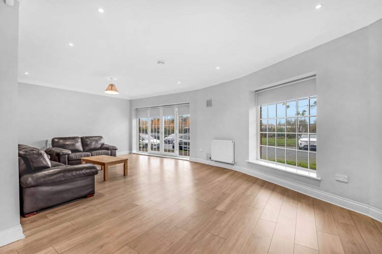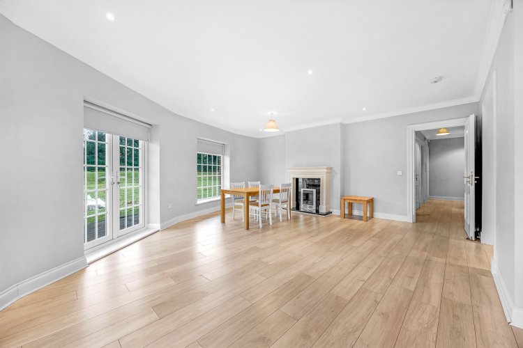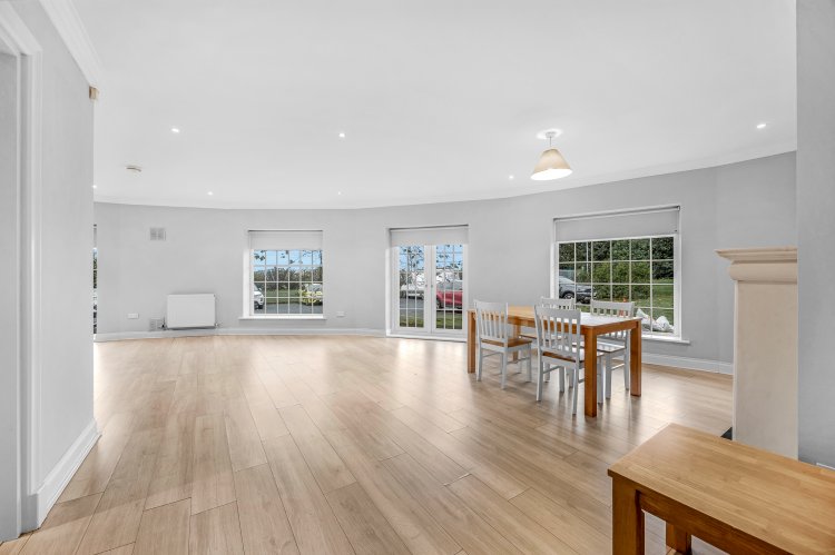 DESCRIPTION: Artis is delighted to present to the market this stunning large ground floor apartment set in the sought after Swiftwood development. Extending to a very generous circa 105 sq.m/1,130 sq.ft this luxurious apartment has the benefit of French doors opening from the living area and bedrooms to a large, sheltered wrap around terrace with westerly aspect. The property has been refurbished by the current owners to allow for a black canvas for the new owners. Throughout the property there are generous proportions and wonderful quality of light abounds. Viewing is strongly recommended. Upon entering the property, one is welcomed by a bright entrance hall leading to all the principal rooms of the property. The stunning large living/dining room sits at the end of the hallway and boasts French doors leading to the terrace and large windows with a gas fire and sandstone fire surround. Set just off the living dining area a modern well-equipped kitchen with granite worktop and high gloss white wall and floor units has the benefit of modern built-in appliances. The main bedroom opens to the deck through French doors and has the benefit of a well equipped ensuite with corner shower unit and a built-in wardrobe. A second double bedroom also opens to the terrace. Completing the accommodation is a stylish bathroom with bath and shower screen, a utility room, and a storage cupboard. Outside there is a large wrap around terrace with a westerly aspect with access to the communal lawns. There is ample resident and visitor parking in the development. Swiftwood is located in a private, gated cul de sac development off Garter Lane. The property is ideally located a few minutes walk from both Saggart village and City West Shopping Centre. There are excellent transport links with Luas stops at Saggart within short walking distance and the N7 a moments' drive away. There are excellent amenities in the area with schools, shops and leisure facilities all close by. Citywest Hotel leisure centre and Golf Club is adjacent.