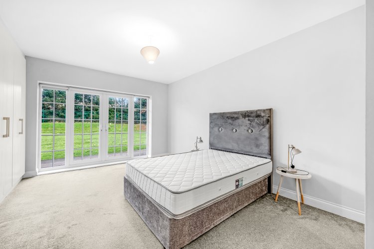 Bedroom 2 Laminate floor, built in wardrobe, ceiling light, French doors to terrace.