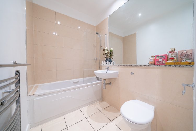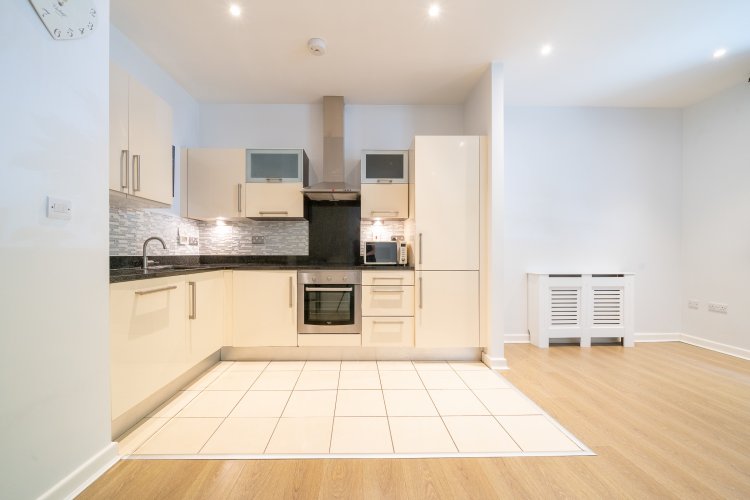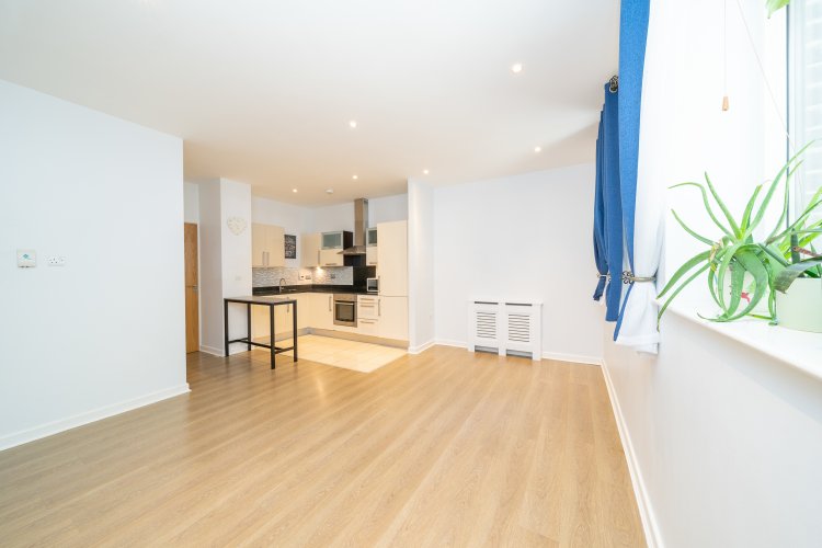 The light filled open plan living room, dining area and kitchen has two windows and is an ideal space to relax and entertain. The living & dining area has laminate floors and spotlights while the fully integrated high spec L shaped kitchen features a tiled floor, splashback tiling and plenty of counter & cupboard space. This beautiful apartment also benefits from a secure underground designated car space which is serviced by a lift.