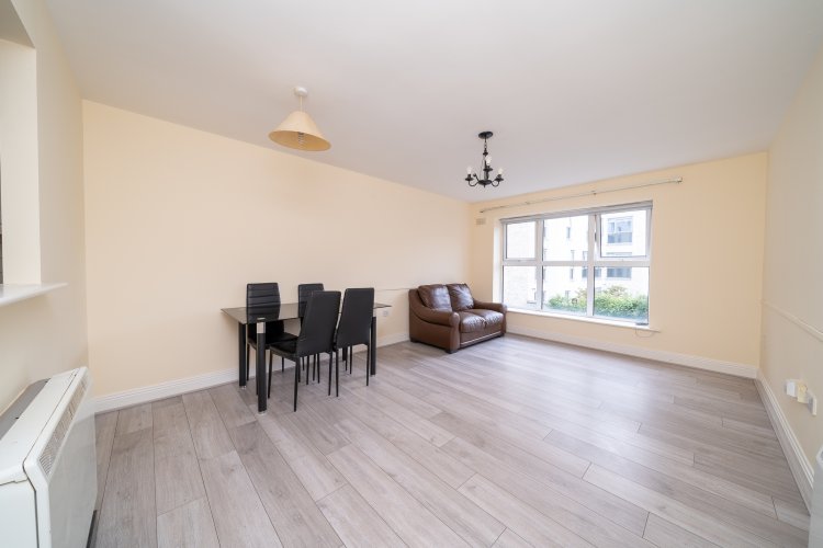 This stylish property features an entrance hall with laminate floors, a hotpress and a storage room. To the right of the hallway is a fully tiled recently refurbished bathroom. Both double bedrooms have laminate floors and sophisticated fitted wardrobes. The light filled open plan living room and dining area also has laminate floors and a large window overlooking the communal gardens. The accommodation is completed by a separate L shaped kitchen with splashback tiling and plenty of counter & cupboard space. This fantastic apartment also benefits from a secure underground designated car space which is serviced by a lift.