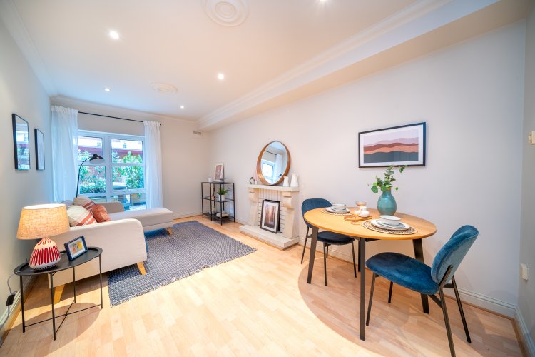 This charming property enjoys an entrance hall with laminate floors and a storage room. To the left of the hallway is a generous sized family bathroom with laminate floors and fully tiled walls. The spacious double bedroom boasts ample sophisticated fitted wardrobes, spotlights and laminate floors. The light filled open plan living room and dining area has laminate floors, ornate coving, an ornate fireplace, spotlights and a large window south facing window overlooking the manicured communal gardens. The accommodation is completed by an L shaped kitchen with splashback tiling and plenty of counter & cupboard space.