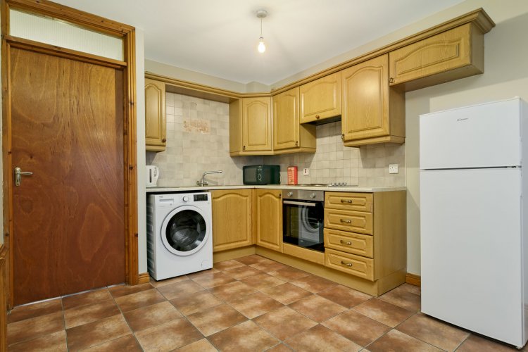 Ceramic tiling. Fully fitted kitchen. Electric hob & oven. Extractor fan. Double doors to balcony area.