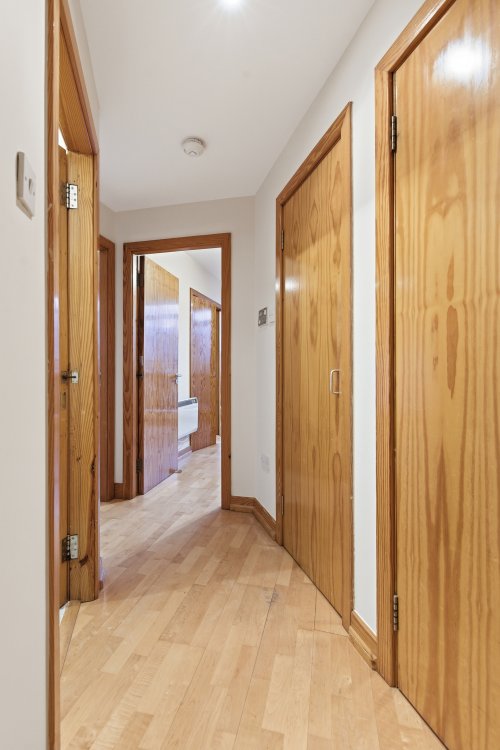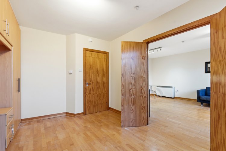 The generously sized double bedroom has convenient built in double wardrobes and storage cupboards, with large windows allowing for plenty of natural light. The spacious bathroom boasts tiled flooring and walls, with the added benefit of a bath. This apartment also benefits form a secure designated underground parking space.