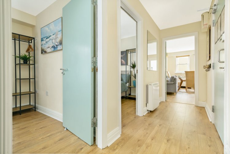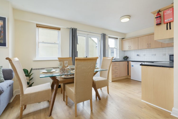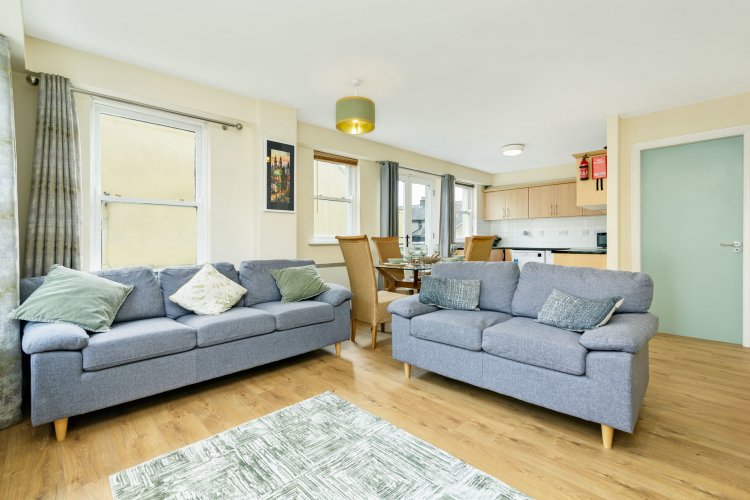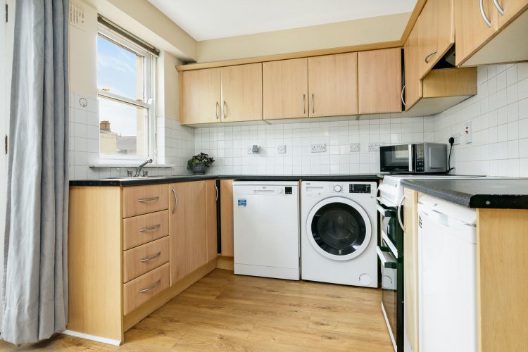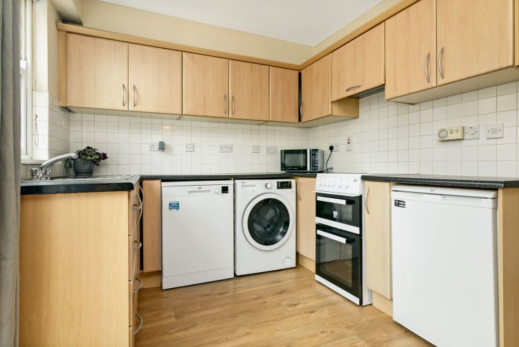 Laminate flooring. Dual aspect windows. Fully fitted kitchen. Tiled splash back. Double doors to balcony.