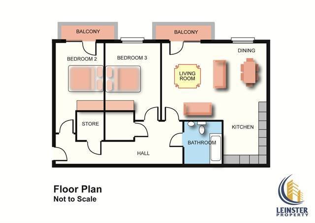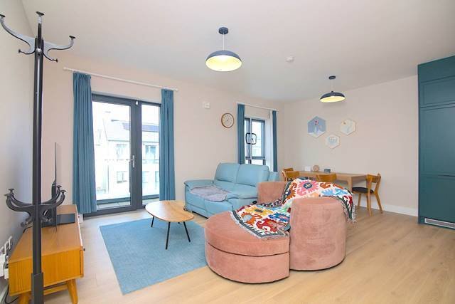 197 Oldtown Woods is nicely positioned just outside of heritage town of Celbridge. There are wonderful amenities closeby including the historic Casteltown estate. Local public transport includes regular bus service to and from Dublin city. Hazelhatch train station and park and ride facility for commuters is only a short drive away., Celbridge town offers an excellent selection of shopping, cafes, cosy pubs and a variety of local shops along the main street and surrounding area. Schools are plentiful with creche facilities also. Nearby towns of Maynooth and Lucan are easily accessible via the M4 motorway, and Dublin Airport is within easy commute., Oldtown Woods is a newly built residential estate with A Rated energy efficient properties, including a community park and basketball court for residents. The development has plenty of visitor parking and number 197 comes with a designated parking space., The property is accessed via shared main entrance with rear bin and bike store area off, the property is situated on the top floor and accessed via stairs., The accommodation in brief consists of:, Entrance Hall: 7.00m x 1.24m With laminate flooring, cloak room and large storage space off, Living/Dining Room: 5.79m x 4.28m With laminate flooring, dining area and direct access to the balcony., Kitchen:3.42m x 2.36m With ample wall and floor units, tiled splashback and laminate flooring., Bedroom 1: 3.75m x 2.68m With laminate flooring and a built in wardrobe., Bedroom 2: 3.74m x 3.05m With laminate flooring, and a built in wardrobe., Bathroom: 2.36m x 2.12m With a double size shower, w.h.b. & w.c, tiled floor and splashback, Features and additional details:, Internal area 80 sq.m ( 861 sq.ft )Property built circa 2023Energy efficient with BER A2 RatingWood floors fitted throughoutLarge storage space Balcony space off living areaDesignated parking space Two balcony spacesProperty is in turnkey conditionPrivately owned property, never rented and offers excellent investment potential for investors, Included in sale - Fitted kitchen integrated appliances, blinds, light fittings., Please contact Leinster Property Sales Team to register interest today, or call us on 01 6284261, check out our website www.leinsterproperty.ie where you can place a bid 24/7 via Offr Button.