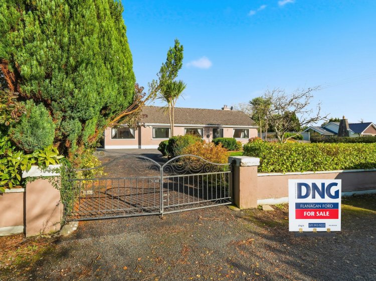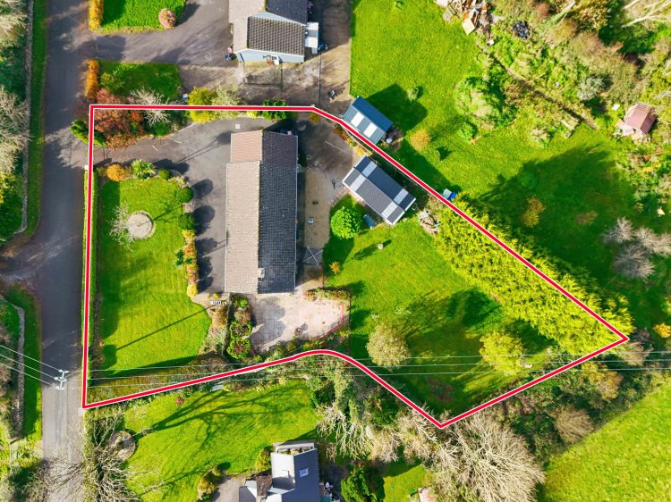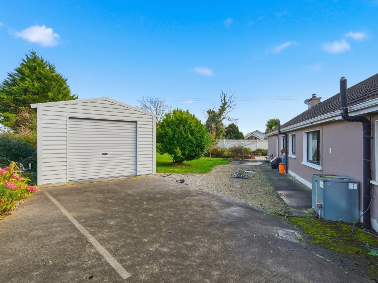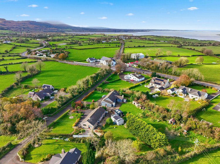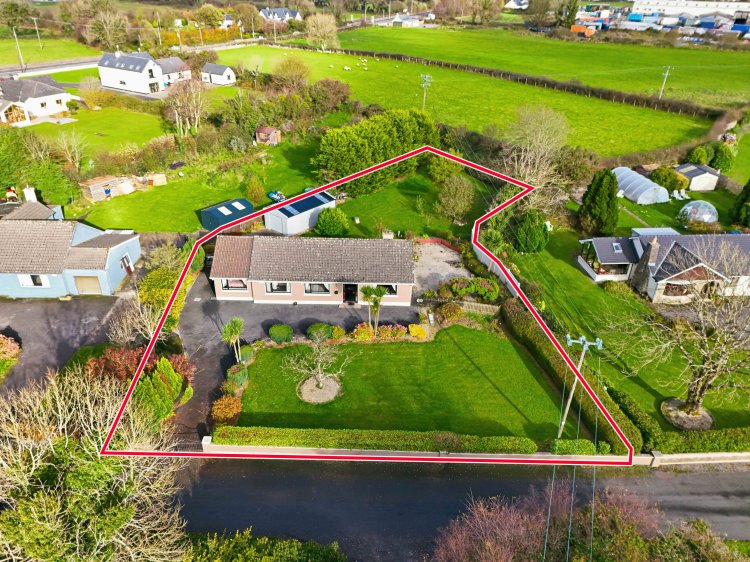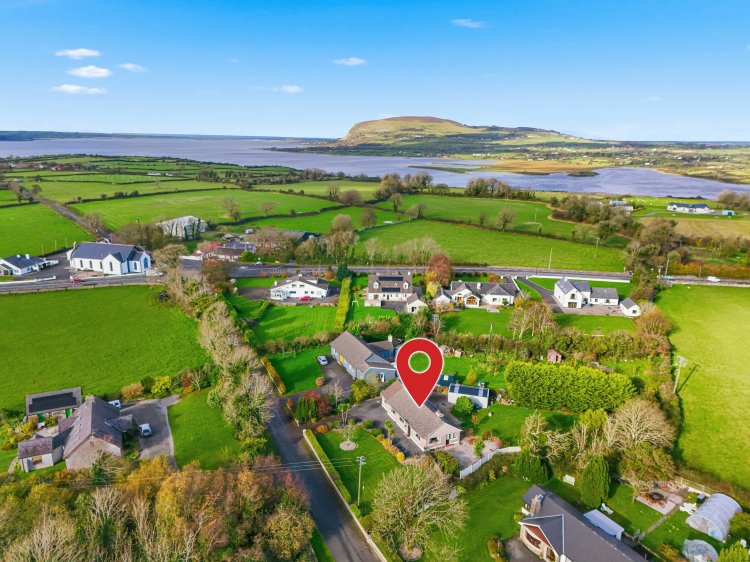 Detached house for sale in Ballysadare with four bedrooms, including a main bedroom with walk-in wardrobe and en-suite. The property has a modern kitchen with integrated appliances, two living areas with stoves, upgraded windows, doors, and heating system. Outside there is ample parking, landscaped gardens, a side patio, and a large Steeltech shed with rear vehicle access. The site is excellent.
