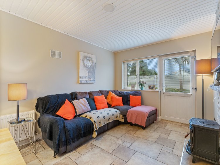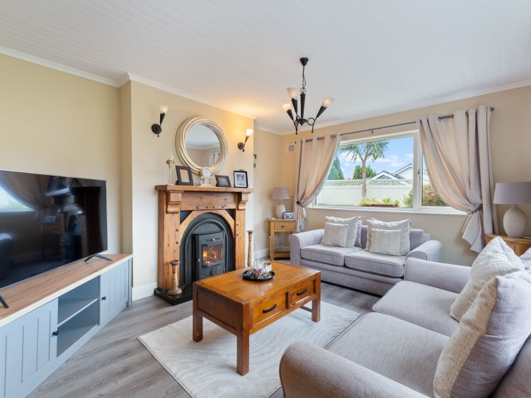 Finished with laminate wood flooring. Large east and south facing windows allow maximum light into this room. Complete with fireplace with insert stove.
