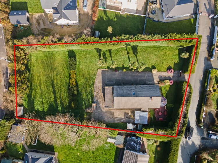 A rear lobby area provides further practicality and can also serve as a utility room. This space leads to the private back garden, which features a covered wood storage area, a shed and a generous mature lawn bordered by hedges for added privacy and charm. The property includes a vehicle garage, offering secure parking, additional storage or workshop potential. Standing at the centre of a substantial private site of approximately 0.6 acres, this property presents an excellent opportunity for future development. There is ample space to construct an additional dwelling to the rear, subject to planning permission.