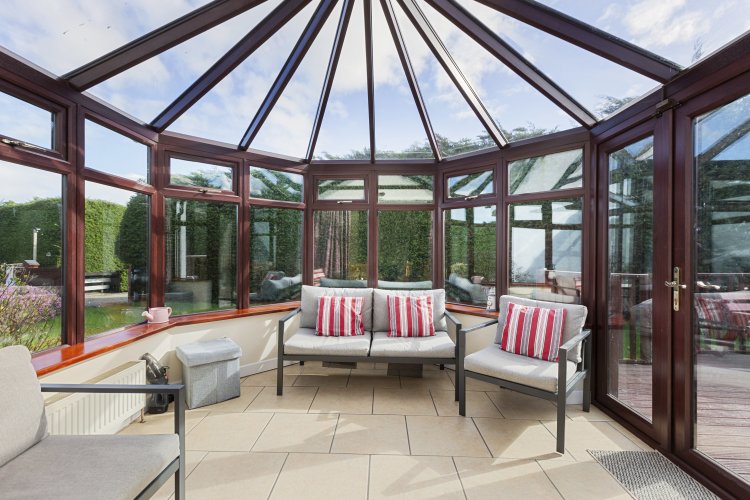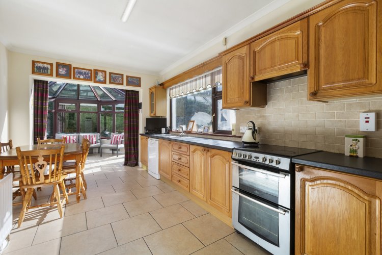 Spanning approximately 163.2 square metres or 1,757 square feet, this well-appointed residence provides bright and spacious accommodation throughout. A welcoming entrance hall leads to a large living room featuring a statement fireplace. The open-plan kitchen and dining area provides plenty of space for both cooking and entertaining, with direct access to a stunning south-facing sunroom. This sunroom opens onto a decking area and mature gardens beyond. The property offers three well-proportioned bedrooms, including a spacious master bedroom with built-in wardrobes. A family bathroom and a separate guest WC complete the accommodation. Upstairs, the converted attic is a versatile space, suitable for a home office, guest accommodation, hobby room or additional storage.