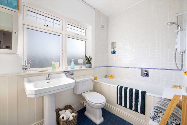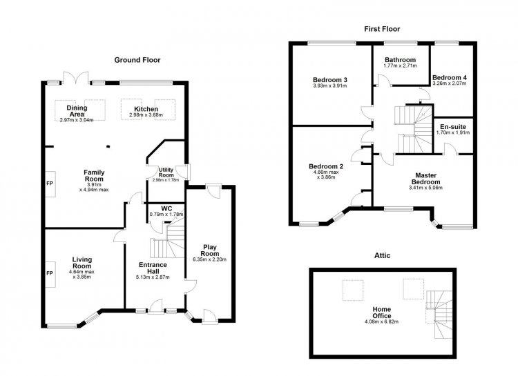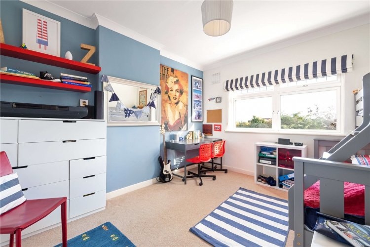 The quality and finish of the well laid accommodation is evident the moment one crosses the threshold; the welcoming reception hall features delightful Moroccan ceramic tiles and exquisite Merbau style hardwood floor – this floor is durable and long lasting and is throughout the principal reception areas. Off the hall there is a guest cloakroom. The living room to the front has a feature bay window and attractive period fireplace with open fire. To the rear there is a fantastic open plan layout incorporating a family room with dining area and superbly appointed kitchen, as one would expect, boasting all mod cons. Double doors open to a large raised deck providing the perfect backdrop for entertaining while the useful concealed utility room has side access to the partially covered side passage. A fabulously spacious play room office with dual front and rear access completes the accommodation at ground floor level.