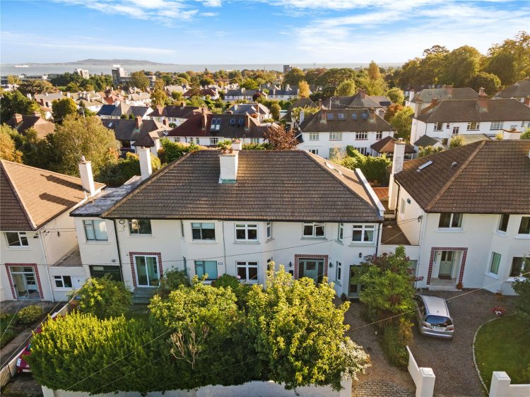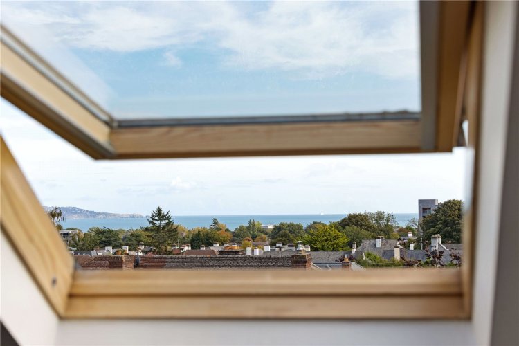 Upstairs there are four bedrooms - all generous in size with master en-suite and a family bathroom. The large attic home office – currently used as a bedroom - enjoys glorious un-interrupted views over Howth and Dublin Bay and of the beautiful Mount Merrion St Thérèse Church lit up at night. Outside the front and rear gardens are well manicured and provide total privacy and seclusion.