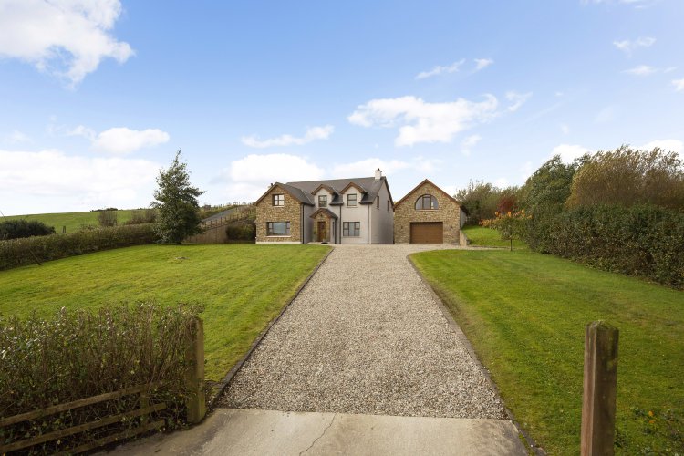 Beautifully appointed 4 bedroom detached house on ca. 0.64 acres with detached double garage situated on the outskirts of Buncrana Town. Meenagorey is a rural townland approximately 4 miles from Buncrana Main Street while not far from Stragill beach and neds point coastal walk. Outside, the house has a private driveway and green grass front lawns with parking at the front. At the back is a raised private patio area which looks over the surrounding countryside. The 2 storey detached garage would make an excellent work shop, self-contained apartment or other alternative use. Inside is superbly finished with positive neutral themes throughout. The downstairs living room has a cosy stove with back boiler which heats the water and the dual zoned heating system. It leads to an open plan kitchen, dining area plus separate bright dining room/ sun room. Off the kitchen is a fitted utility room leading to the back door and downstairs WC. A large second sitting room with open fire completes the downstairs accommodation. Upstairs are 4 double bedrooms and a family bathroom. The master has an ensuite and the 4th bedroom is currently used as a dressing room. Overall, the house and garage measure 312.7 sq m (3366 sq ft) giving it many potential uses including a family home, rental property or holiday home. Note: The outside leaf of the house was completely replaced in May 2022. The house has never been tested for MICA but it did show cracking in one gable of the house and this was the reason for the remedial works. The presence of MICA in the original outer leaf has been reflected in the asking price.
