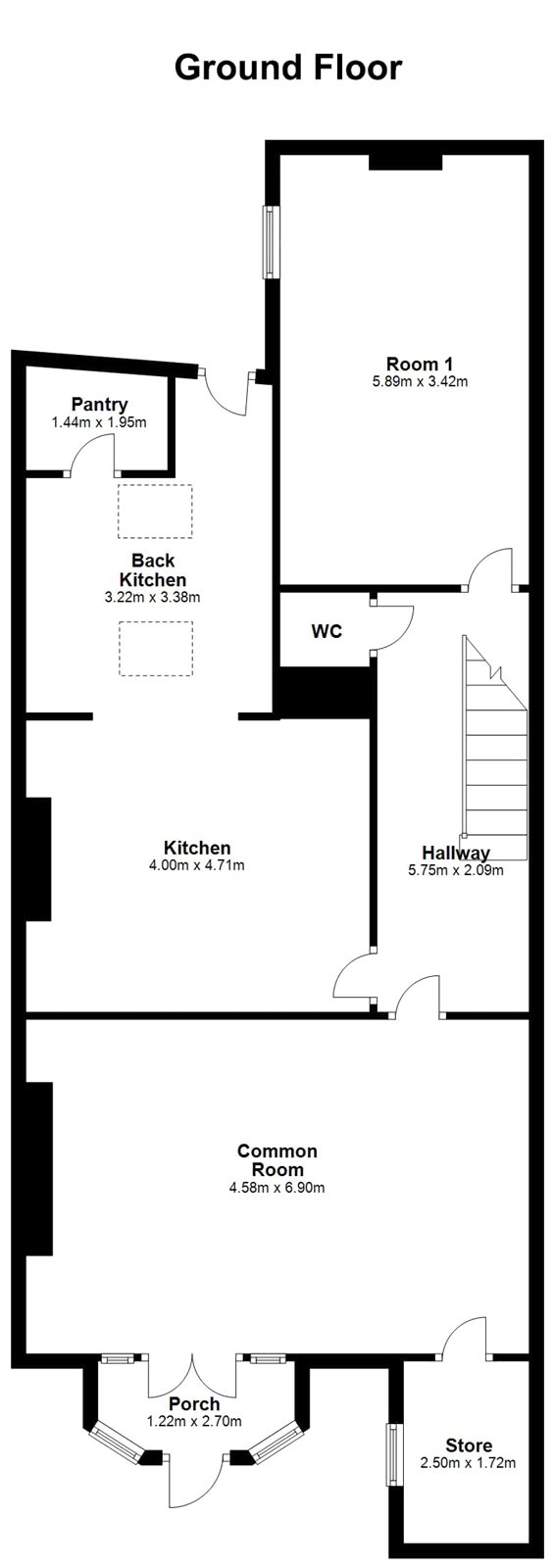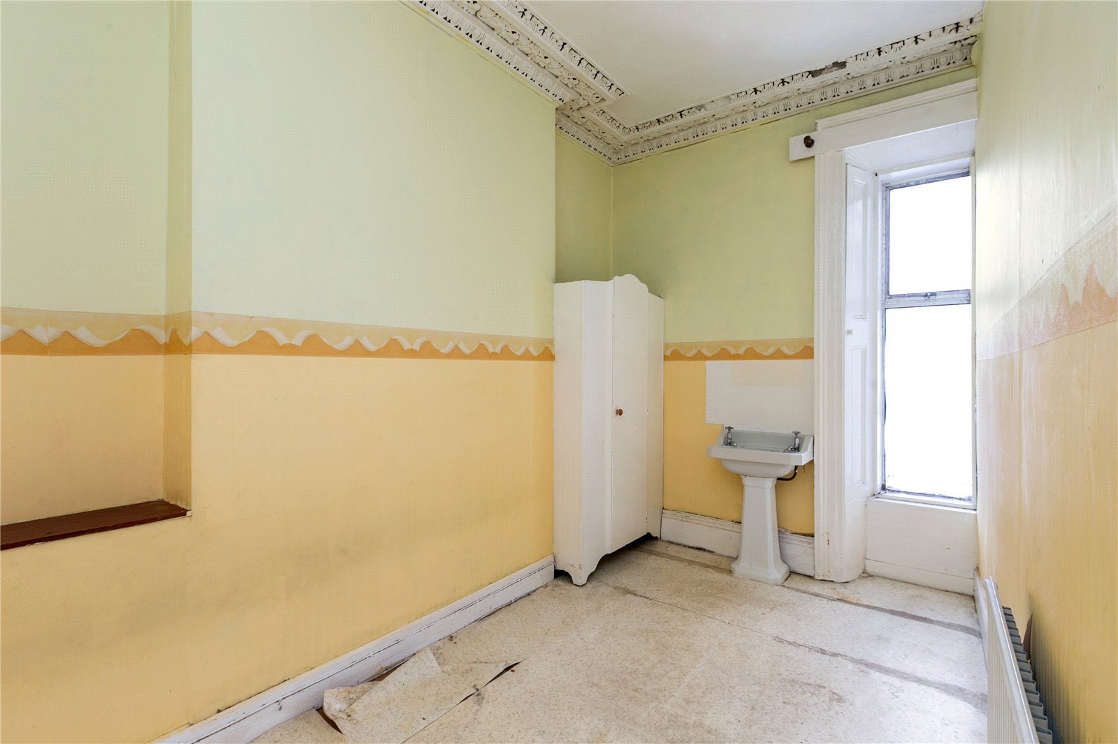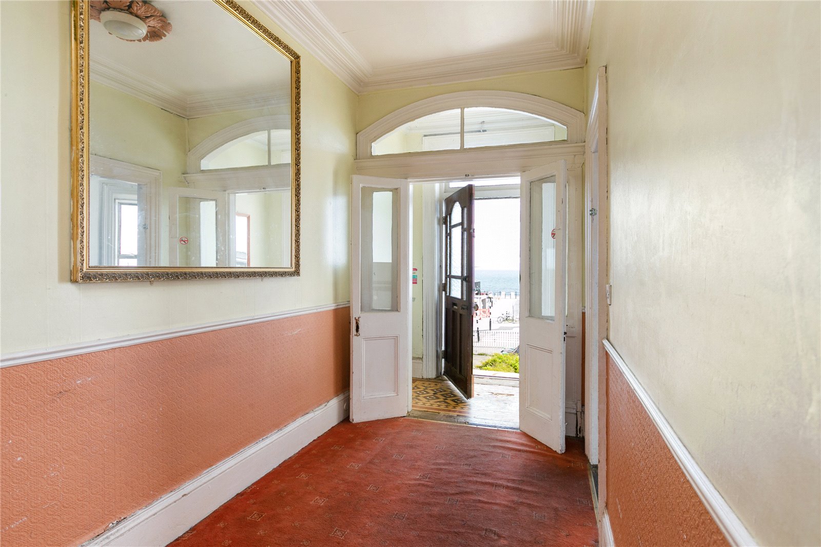 The accommodation within comprises a front facing common room with under stairs storage off, kitchen with back kitchen and pantry with access to the rear patio. One bedroom and a shower room with separate w/c complete the ground floor accommodation. On the first floor there is an inviting entrance hallway with dado rail, a superb front room with a bay window and sea views. There are three further rooms and a bathroom at this level. The first-floor return features another bedroom and bathroom with separate w/c while on the top floor there are 4 further rooms with the front room especially inviting with bay window and excellent sea views.