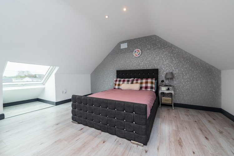 The property is approached by a cobble-loc driveway to the front and side and there is a large detached garage which includes a toilet and attic storage along with a lean-to fuel store. It benefits from PVC double glazed windows, dual solid fuel/oil-fired central heating, a new condenser boiler and pumped exterior walls. It is just 7km from Monasterevin train station and less than 12km to Kildare train station.