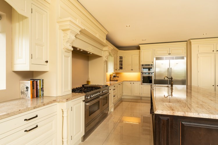 Internally, a vaulted ceiling provides for a bright and airy reception which spares no expense and has been meticulously well designed. High end appliances are not lost in the expansive ?in-frame? country style kitchen. A large kitchen island serves for the working kitchen while another serves for a large breakfast bar or for entertainment alike.