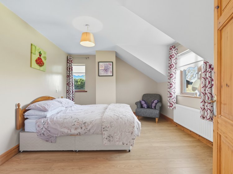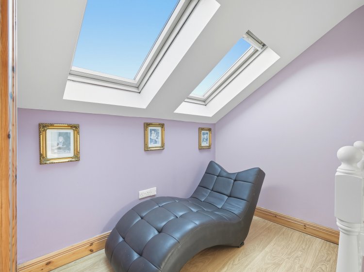 4.30m x 4.50m 14.11ft x 14.76ft | Finished with laminate wood flooring. This room is currently being used by its owners as a second sitting room. However, it was designed as a downstairs bedroom. It is a spacious, bright room with windows on two gables. |