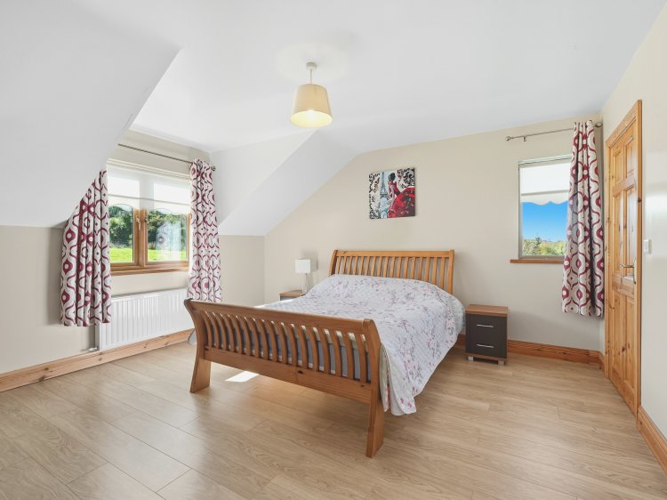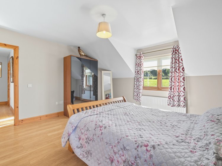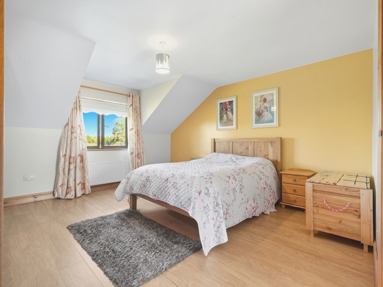 4.30m x 3.50m 14.11ft x 11.48ft | Finished with laminate wood flooring. This room is ensuite and it has windows on two gables. |