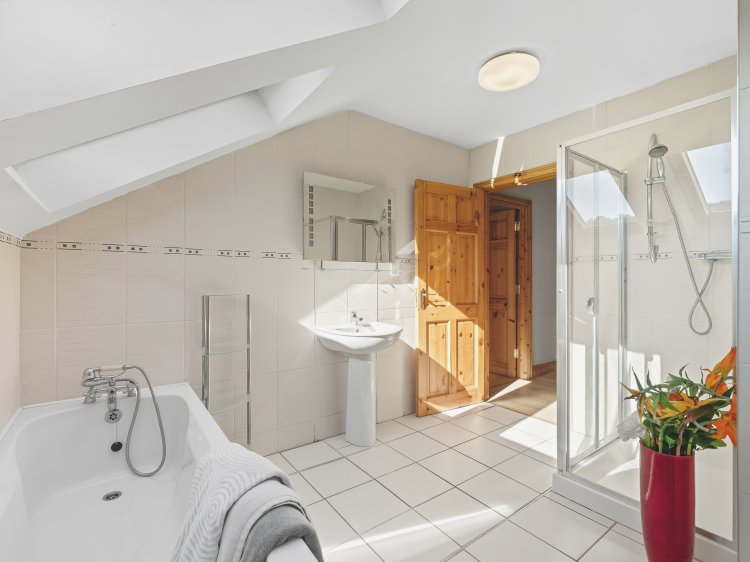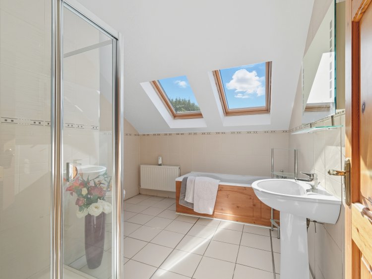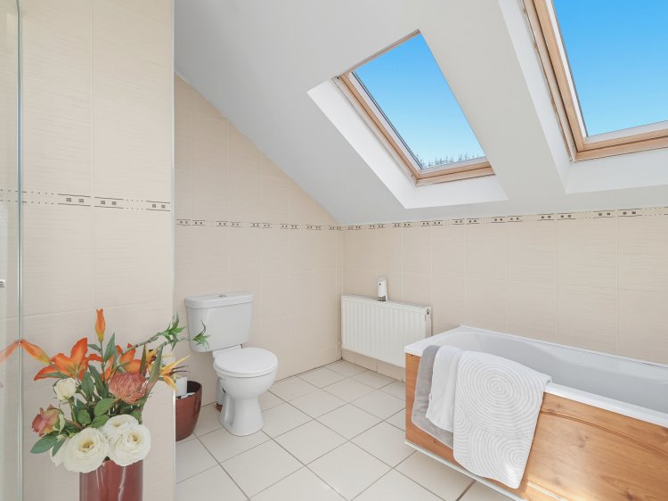 3.20m x 2.80m 10.50ft x 9.19ft | Fully tiled and includes bath, WC, WHB and corner shower and two Velux windows to the rear. Finished to a very high standard. |