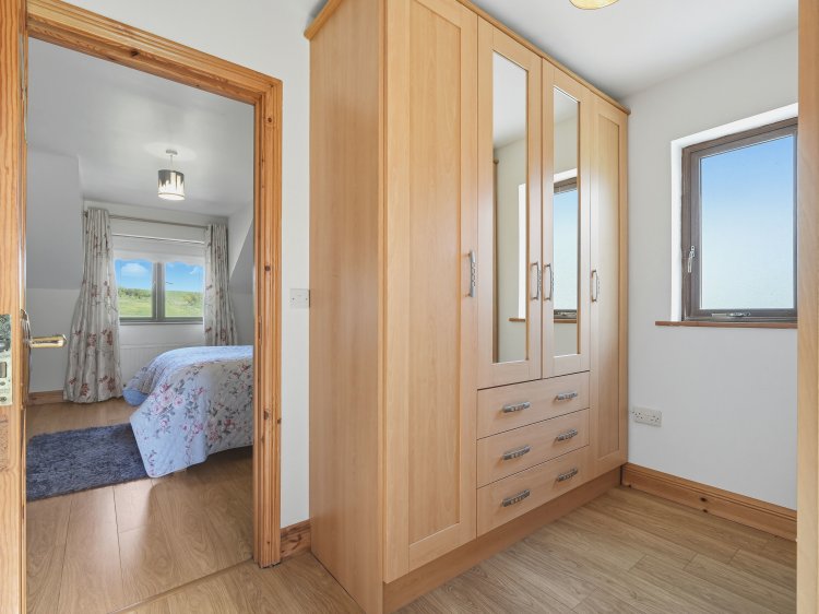 2.20m x 3.00m 7.22ft x 9.84ft | Finished with laminate wood flooring. It has fitted wardrobes on both sides in this spacious, excellent space. It opens through to a large ensuite. |