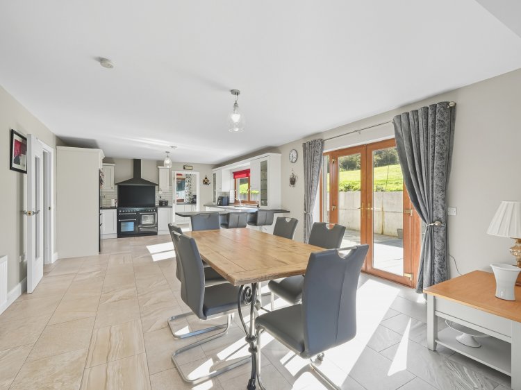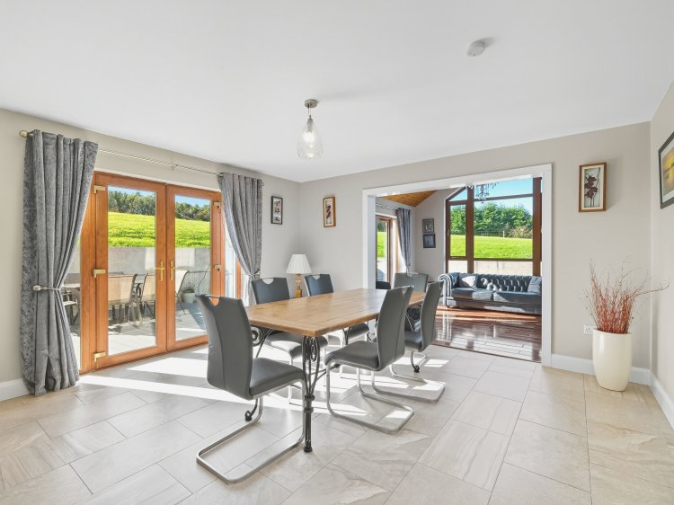 The dining area has glazed patio doors that open out onto the south-facing patio to the rear and this room is open plan to the sun lounge. |