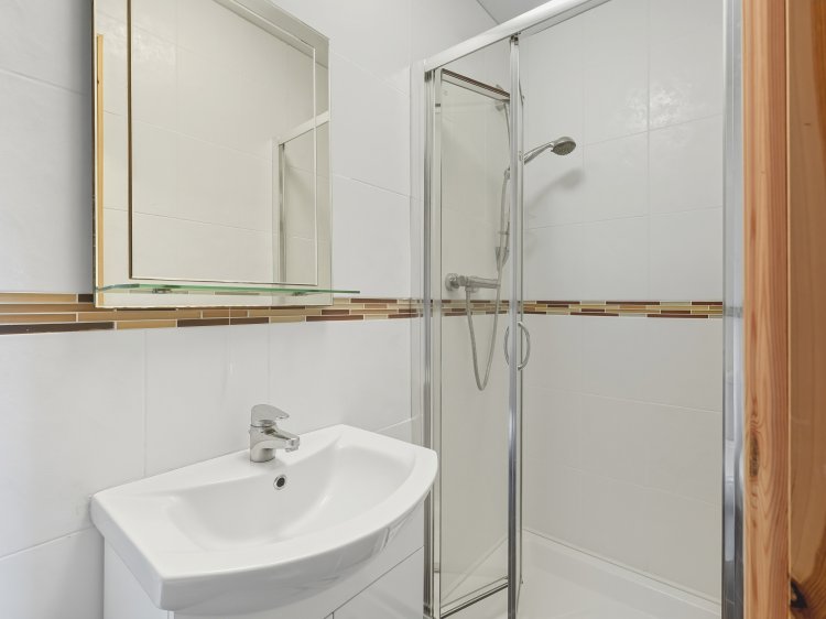 1.00m x 2.60m 3.28ft x 8.53ft | Fully tiled and includes WC, WHB complete with vanity unit and has a shower area complete with glazed shower door. |