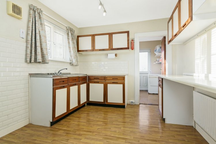 Fully fitted kitchen. Laminate flooring. Tiled splash-back. Carpet floor to dining area. Feature fireplace, with back boiler. |