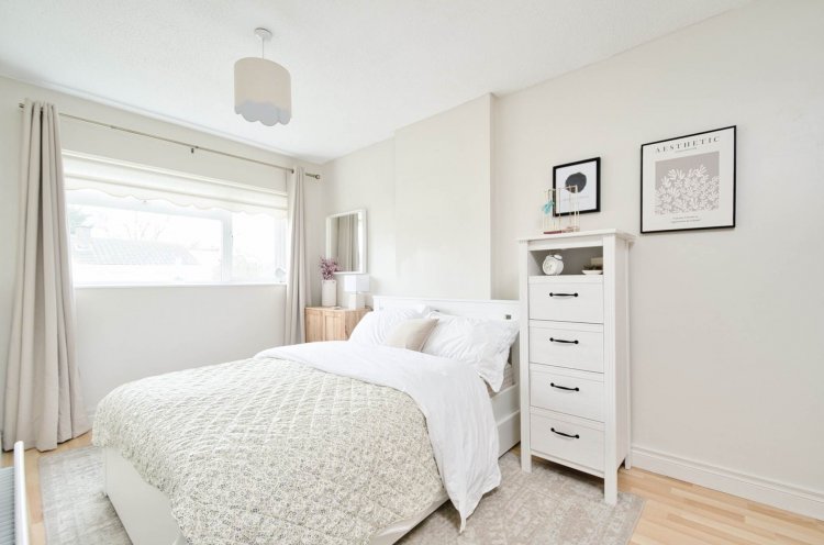 Bedroom 4 (Rear) 3.1m x 2.5m Laminate flooring, hanging pendant light and roller blinds.