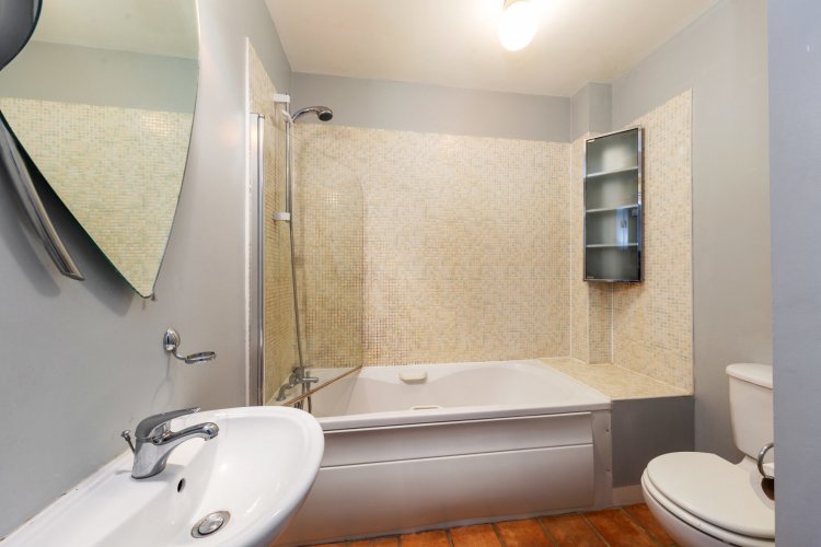 Bathroom 2.17m x 1.41 Tiled floor. Part tiled walls. WC. Wash hand basin. Bath.